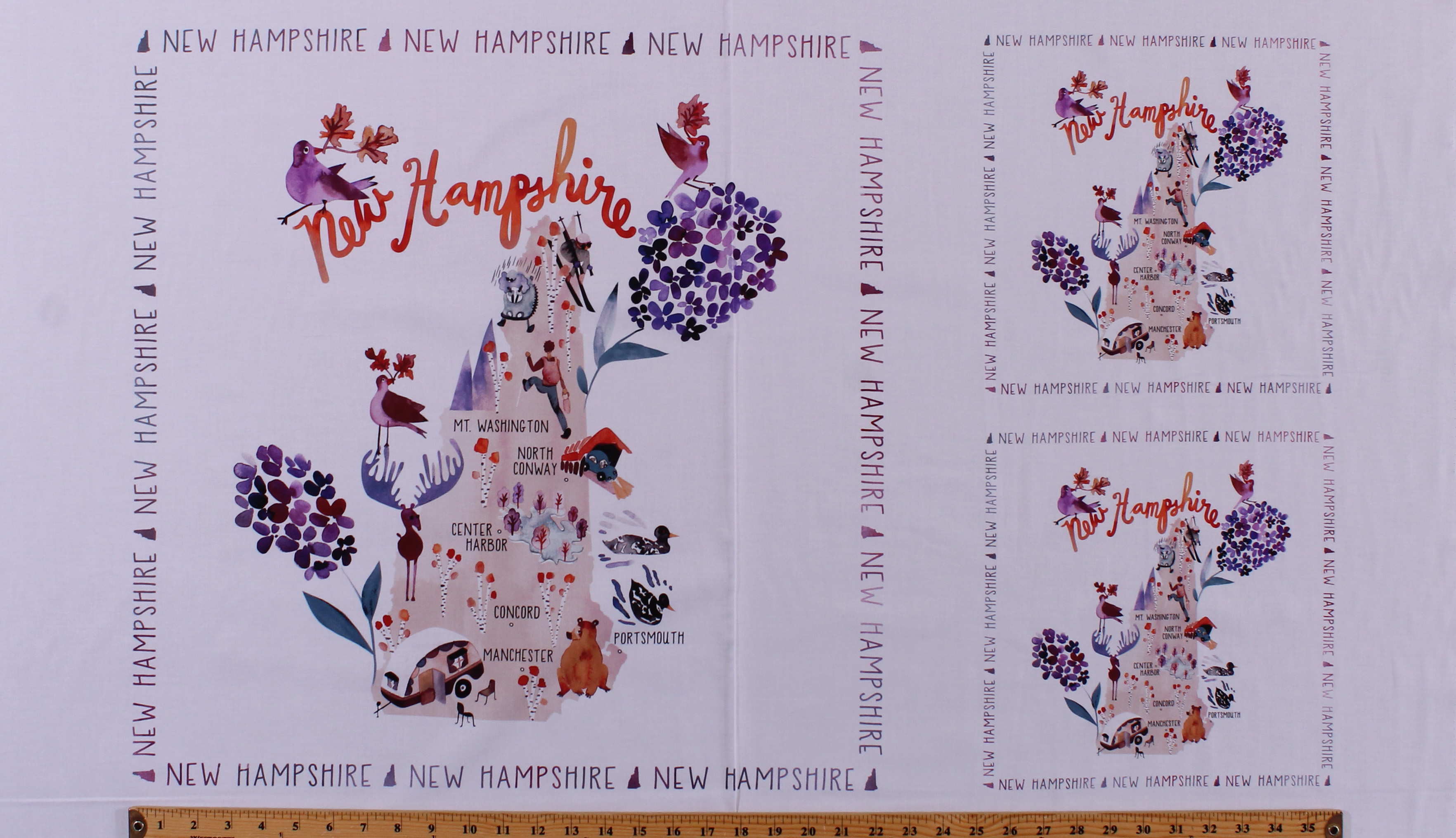 24 X 44 Panel New Hampshire State Symbols Emblems Icons Flowers Lilacs Purple Finch The Granite State Cotton Fabric Panel Nh51611p X Walmart Com
